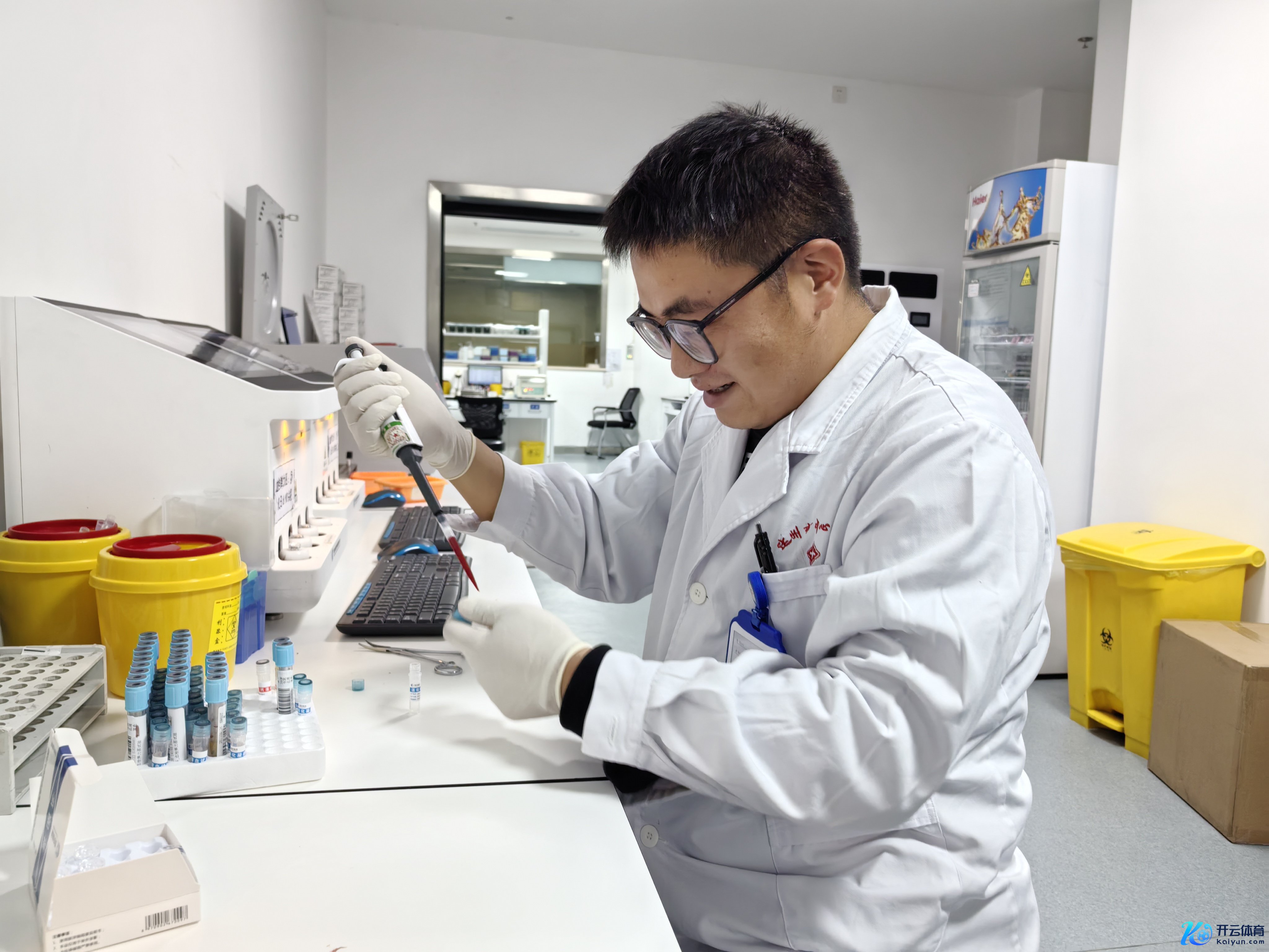11月9日晚9点30分,达州市中心病院输血医学科窗口,频频会有患者或家属送来血液样本,夜班医师陈玖东仔细查对信息后,将样本放进检测仪器。