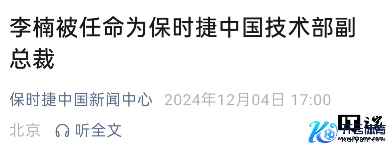 IT之家 12 月 4 日音信,保时捷中国本日告示,增设技巧部门开云官网切尔西赞助商,任命李楠为保时捷中国技巧部副总裁。