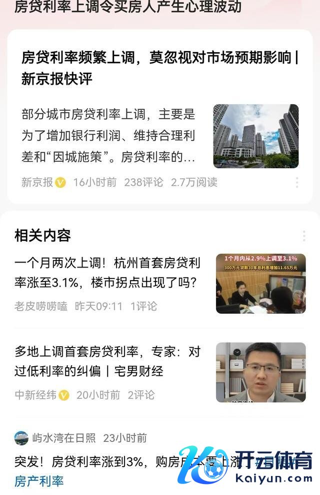 12月初,不少新买房的专家去银行办理交易房贷手续时,片刻发现,房贷利率上调了,之前筹商时说首套房不错作念到2.8%,但是当今条约利率却仍是是3.1%了。这然而不得了啊,若是是100万房贷30年期限开云体育(中国)官方网站,那么意味着要多支拨近5.8万的利息。