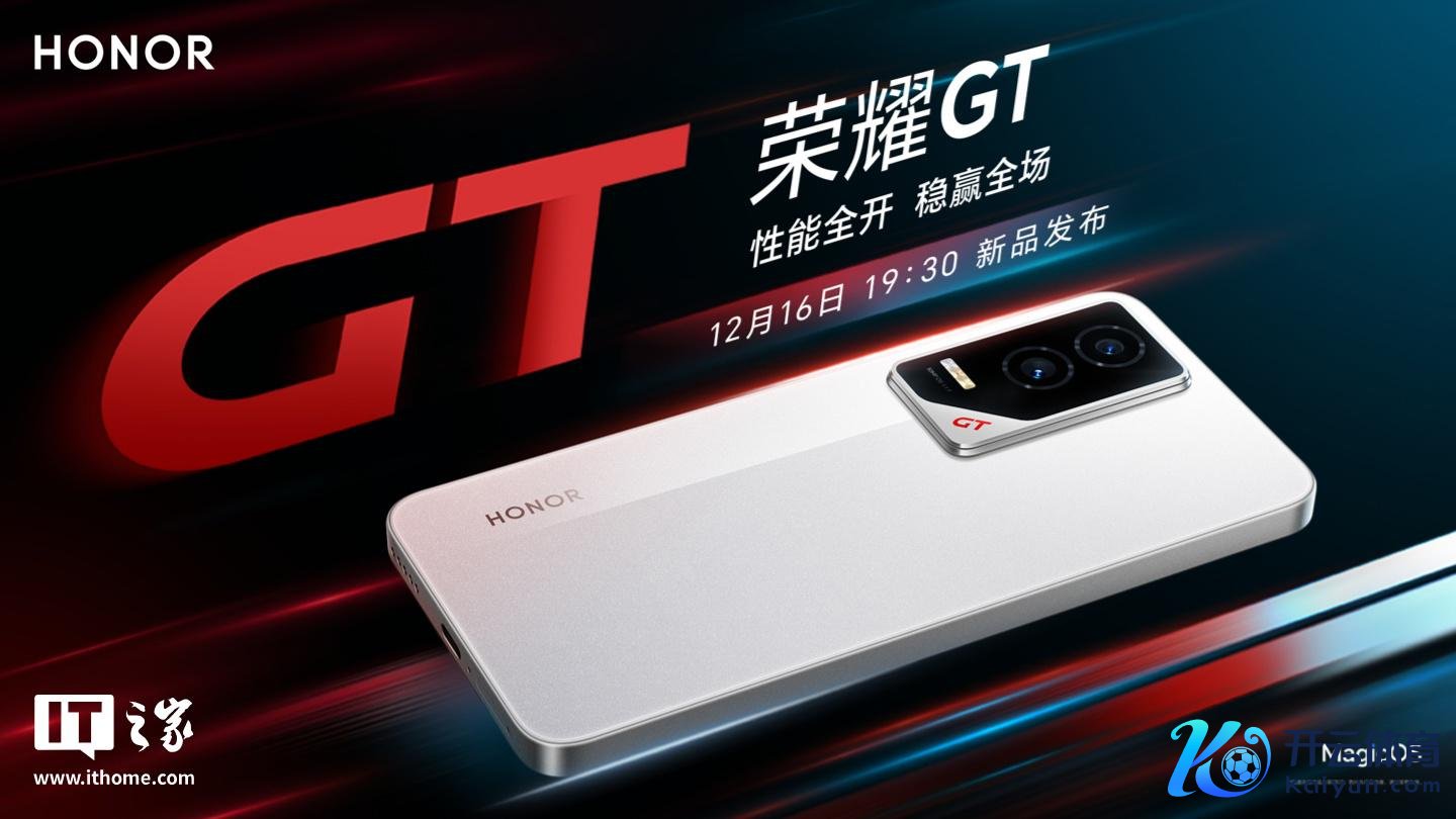 IT之家 12 月 9 日音书,手机官方当天发文通告,荣耀 GT 手机将于 12 月 16 日 19:30 发布。堪称“性能全开,稳赢全场”。