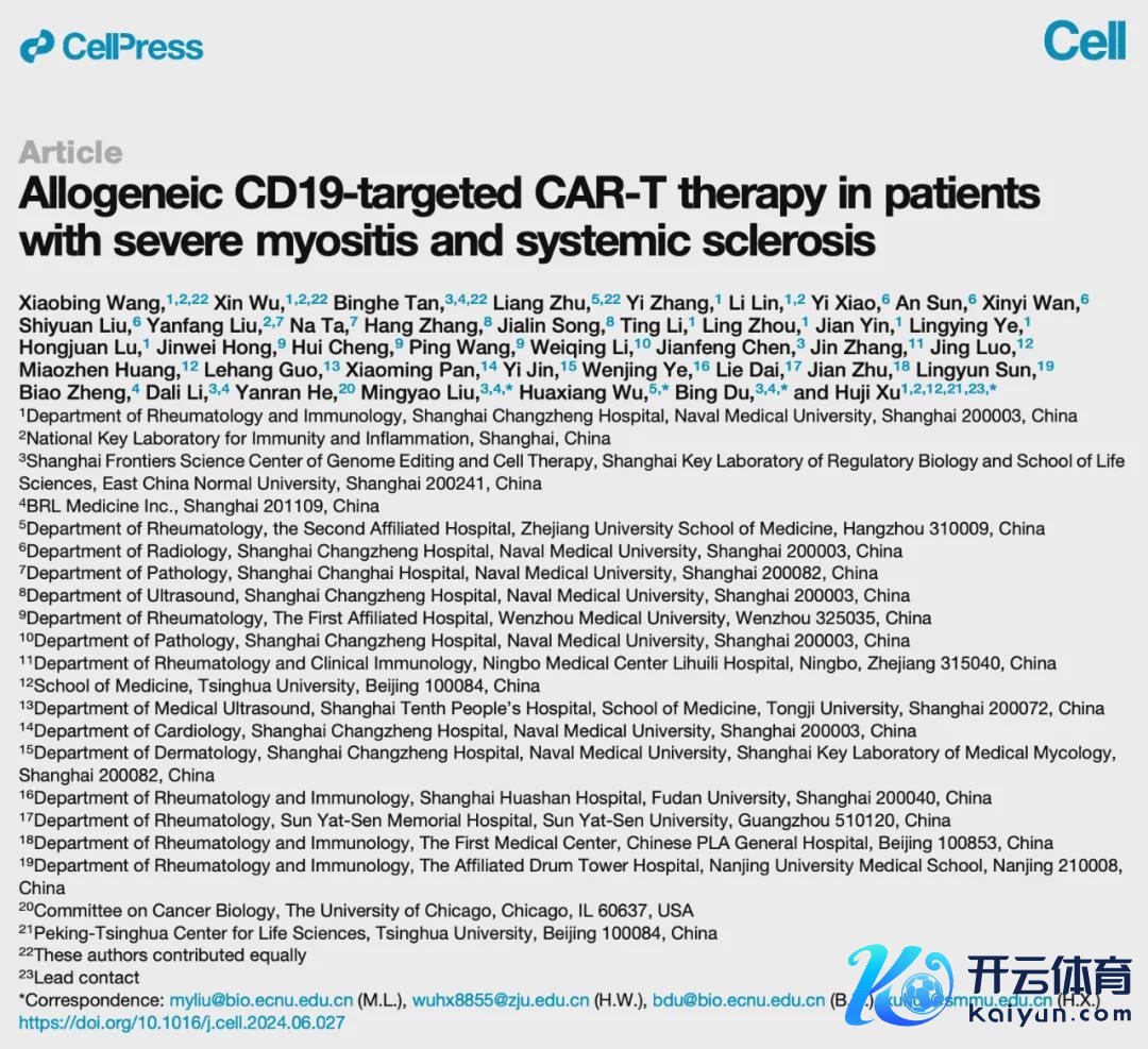 2024年7月16日,徐沪济皆集邦耀生物、华东师范大学、浙江大学医学院第二附庸病院的议论东谈主员,在Cell期刊发表论文,先容了使用一种窜改性的细胞疗法来养息本身免疫病的第一个临床截至。