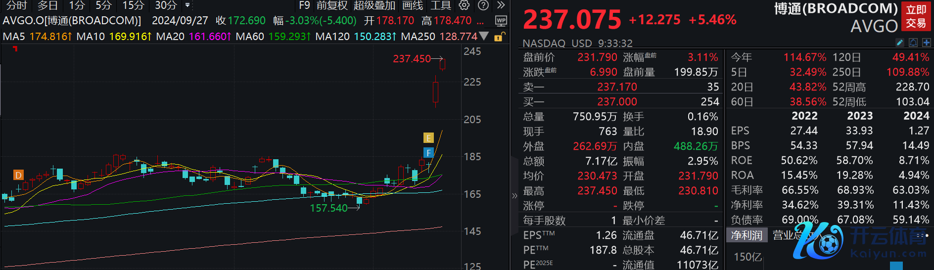 22:33 博通涨超5%