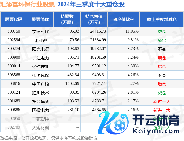 汇添富环保行业股票为股票型基金,凭据最新一期基金季报流露,该基金金钱建树:股票占净值比89.62%,无债券类金钱,现款占净值比10.52%。基金十大重仓股如下: