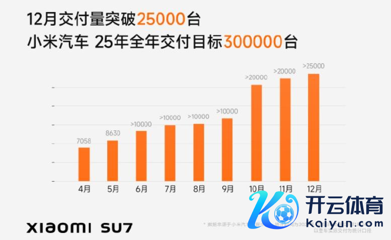 1月1日,小米汽车在微博发布音讯称,2024年12月录用量率性25000台。
