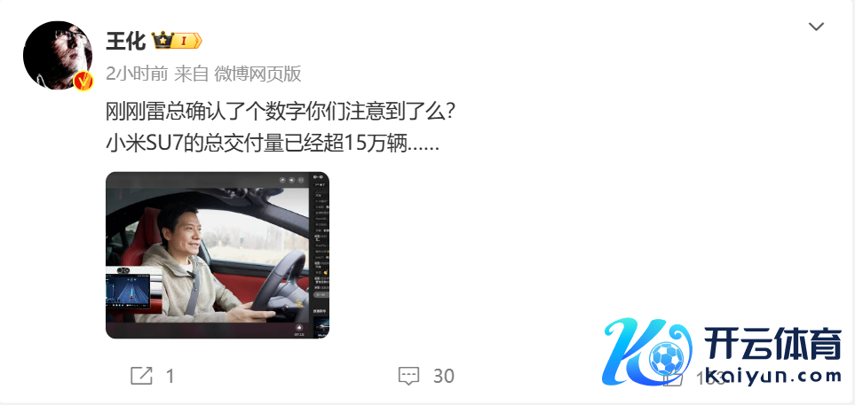 小米集团公关部总司理王化在微博上发文称,在当天的直播中,小米创办东说念主、董事长兼CEO雷军阐述了一个数字:小米SU7的总录用量照旧罕见15万辆。