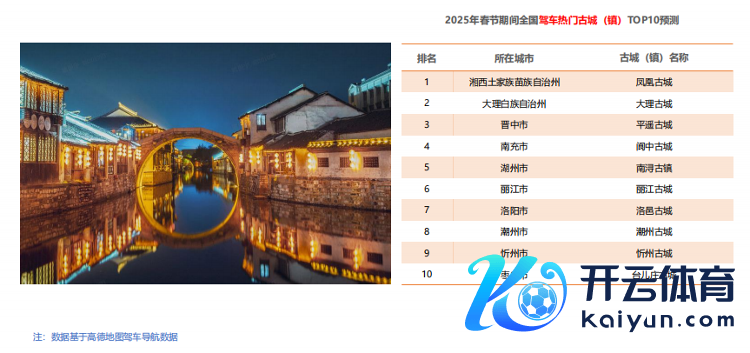 《论说》发布了春节工夫寰球驾车热点出行缱绻地预测名单。其中,在驾车热点古城(镇)TOP10预测名单中,展望湘西土眷属苗族自治州凤凰古城、大理白族自治州大理古城等驾车热度较高;在驾车热点登山胜地TOP10预测名单中,展望老君山表象遗址区、普陀山表象遗址区、五台山表象遗址区、九华山表象遗址区等驾车热度较高。