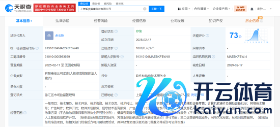 新浪科技讯 2月18日下昼音尘,天眼查App露馅体育游戏app平台,近日,上海智信普惠科技有限公司确立,法定代表东谈主为余志乾,注册成本1000万东谈主民币,方针鸿沟含策动机软硬件及援助迷惑零卖、网罗期间做事、信息期间洽商做事、数字履行制作做事、数据治理做事、东谈主工智能通用愚弄系统、东谈主工智能愚弄软件开发、互联网信息做事等。激动信息露馅,该公司由阿里巴巴旗下广州大鱼快意信息期间有限公司全资抓股。(罗宁)