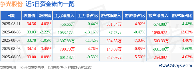 本站音讯,罢休2025年8月11日收盘,争脸股份(301092)报收于34.36元,上升4.03%,换手率6.23%,成交量3.78万手,成交额1.28亿元。